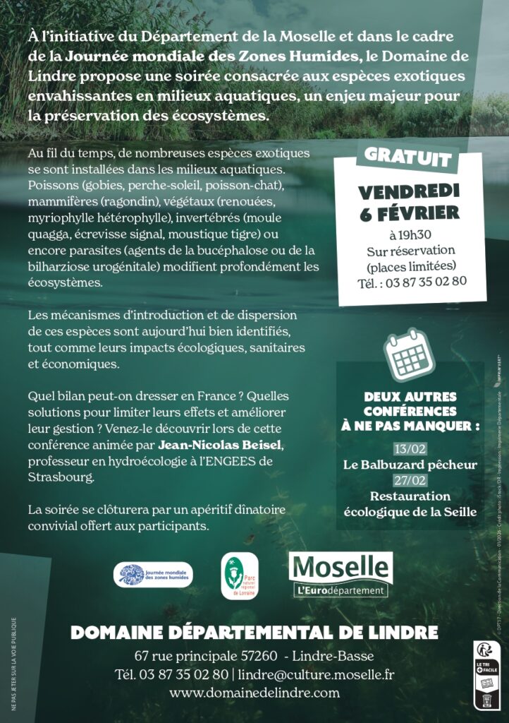 Dans le cadre du mois des Zones Humides, plusieurs conférences thématiques auront lieu pour vous faire découvrir et comprendre les écosystèmes en lien avec l’eau. La première se tiendra le 6 février et portera sur le thème de l’introduction d’espèces exotiques en milieux aquatiques.